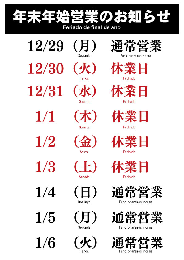 For inquiries during the holidays, we will respond in order once we reopen.